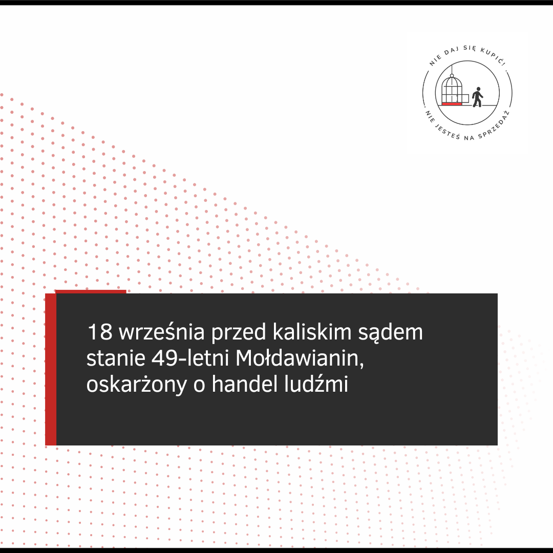 Mężczyzna pochodzący z Mołdawii wraz z żoną oraz 23-letnim synem zamieszkiwali w powiecie kaliskim, gdzie przetrzymywali uprowadzonego mężczyznę z Łotwy. Na miejscu przetrzymywania ofiary znaleziono worki foliowe wypełnione monetami. 49-latek został oskarżony o zmuszanie do żebractwa i wykorzystywanie tego jako źródło dochodu, a także o handel ludźmi. Proces w tej sprawie ma ruszać przed kaliskim sądem 18 września.