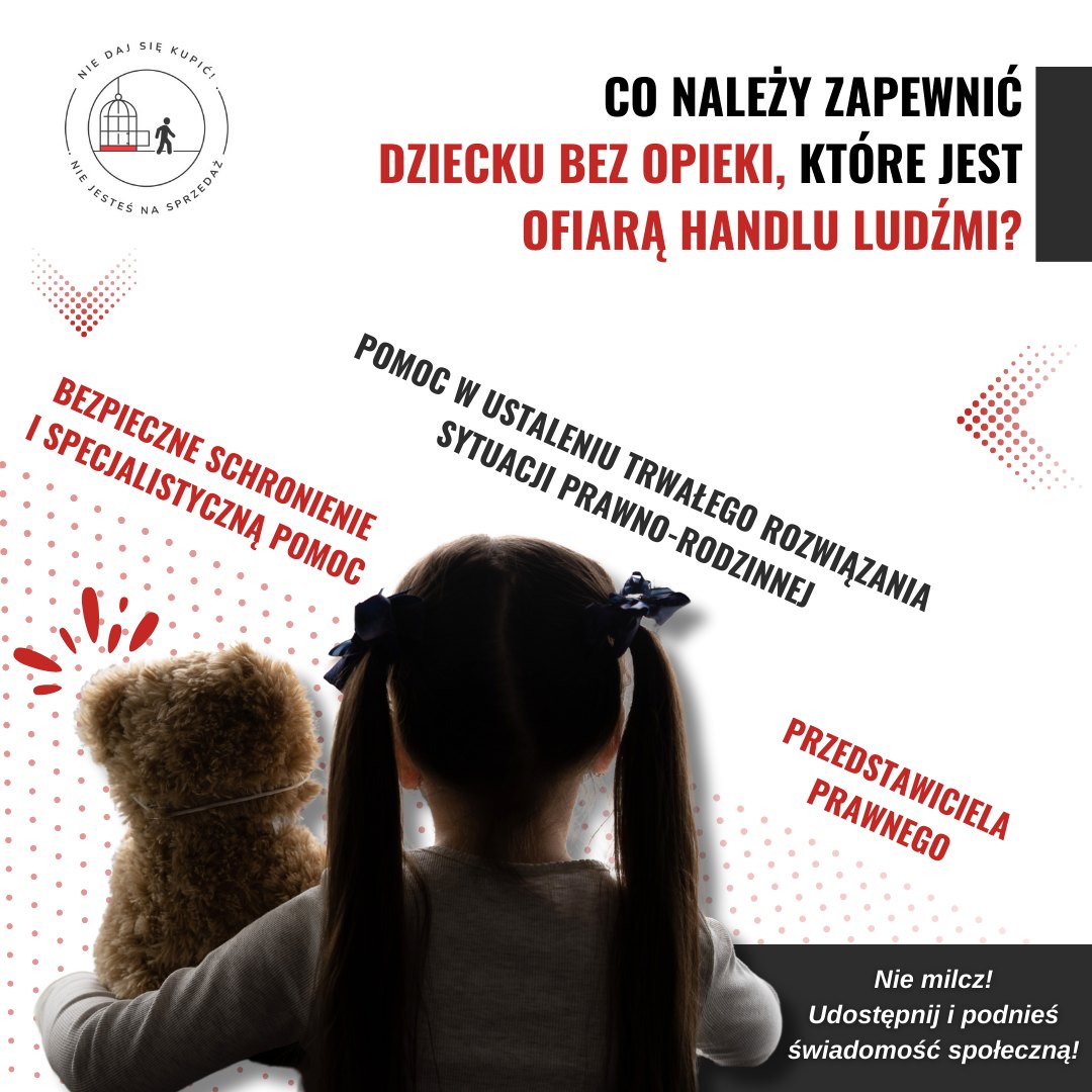 🌟 Dzieci są naszą przyszłością, a ich bezpieczeństwo i dobrostan powinny być naszym wspólnym priorytetem! 🌟 ❗️Czy wiesz, że każde dziecko bez opieki może być potencjalną ofiarą handlu ludźmi? Dlatego tak istotne jest, abyśmy jako społeczność działali razem, aby zapewnić im niezbędne wsparcie i ochronę. 🤝 👉Dzięki trzem kluczowym aspektom: bezpiecznemu schronieniu i specjalistycznej pomocy, obecności kompetentnego przedstawiciela prawnego oraz efektywnej pomocy w ustaleniu trwałego rozwiązania sytuacji prawno-rodzinnej, możemy dać tym dzieciom szansę na lepsze jutro. Pamiętajmy, że każde dziecko zasługuje na opiekę i wsparcie. ❣️Dziel się wiedzą, inspiruj innych do działania bo razem możemy uczynić ogromną różnicę w życiu tych dzieci! 🌟💙 Twój głos ma znaczenie! 🗣️💬