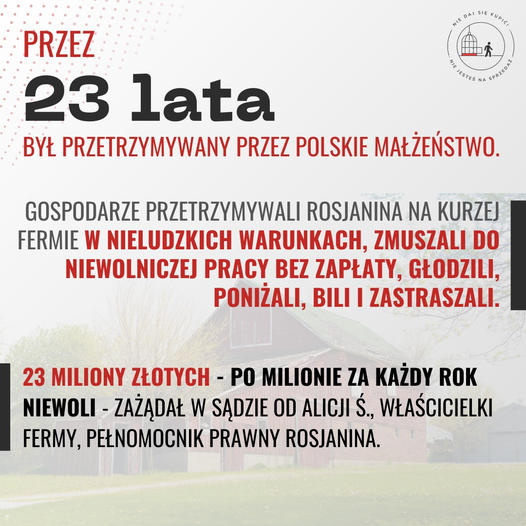 🔔 Rosjanin przez 23 lata był zmuszany do niewolniczej pracy na kurzej fermie pod Prochowicami.