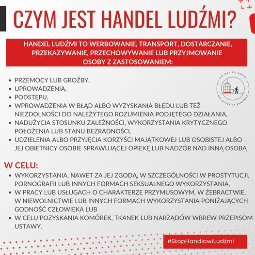 ❗️Handel ludźmi to dzisiejsza forma handlu niewolnikami. Niestety, bieda, niepewność jutra oraz problemy ekonomiczne i polityczne zmuszają ludzi do opuszczenia swoich krajów w poszukiwaniu lepszego życia. Ale często ta podróż staje się pułapką, prowadzącą do piekła. ❓Co sprawia, że przestępcy zajmują się tym procederem? Przede wszystkim stosunkowo niewielkie ryzyko. Większość przypadków to handel ludźmi w celu wykorzystania seksualnego, ale coraz częściej zdarza się także praca przymusowa. ➡️W Polsce coraz częściej pojawiają się cudzoziemcy z różnych krajów, wykorzystywani w pracy przymusowej. To zjawisko wymaga naszej uwagi i reakcji.