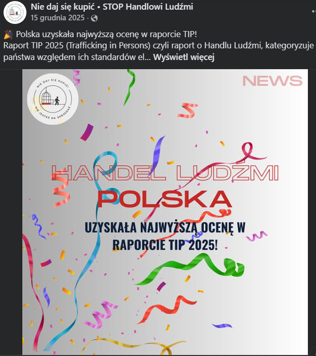 ,,Problem handlu ludźmi w Polsce jest bardzo poważnym przestępstwem i tak naprawdę, nie wiadomo jak wiele osób stało się jego ofiarą. Główną przyczyną jest to, że system identyfikowania ofiar, a także ściganie sprawców tego procederu jest w naszym kraju bardzo nieefektywny. Do tego dochodzi brak świadomości Polaków, że przestępstwo to ma miejsce również u nas, nie tylko w obcych krajach. "